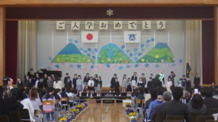次は、入学式。新1年生を、2年生から6年生、保護者、ご来賓の皆様、教職員が温かく迎えました。1年生は元気に明るい歌声で発表してくれました。私も青木小学校1年生なので、一緒に学校生活を楽しもうとメッセージを送りました。